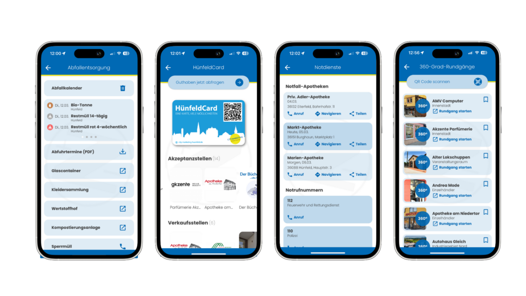 Das Menü ermöglicht den Hünfeldern zudem den Zugang zu vielen weiteren Services, darunter Bürgerservices der Stadtverwaltung, die Navigation mit dem „Hünfelder Pathfinder“ durch das Rathaus oder die Kinderseite.