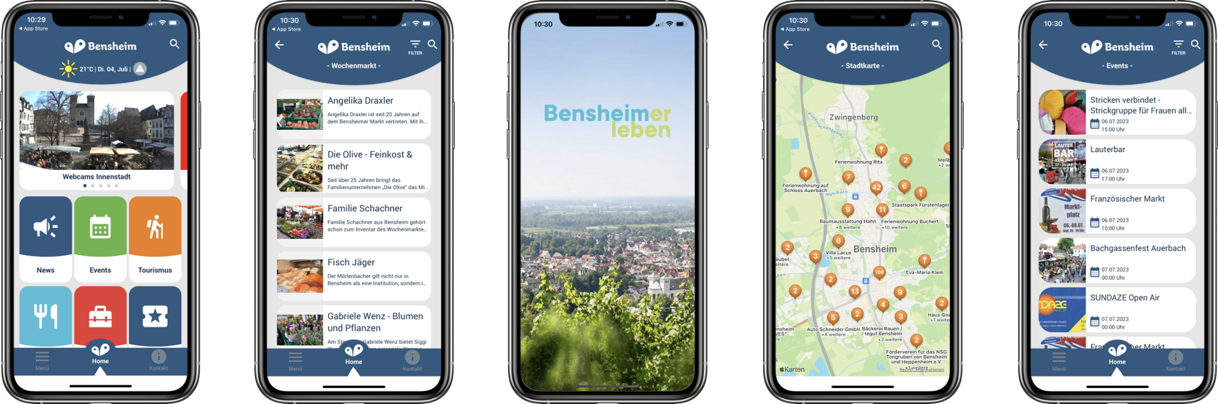 Die Bensheim-App bündelt ein umfangreiches Spektrum an nützlichen Informationen, städtischen Services, Veranstaltungen und aktuellen Nachrichten der Stadt sowie des „Bergsträßer Anzeigers“. Darüber hinaus bietet die App auch Übersichten lokaler Anbieter in den Rubriken „Essen & Trinken“, „Handel & Dienstleister“ und „Wochenmarkt“. Besucher und Einheimische finden im Bereich „Tourismus“ hilfreiche Tipps für die eigene Freizeitgestaltung, wie beispielsweise Ausflugstipps, aktuelle Wanderrouten und Weinproben.